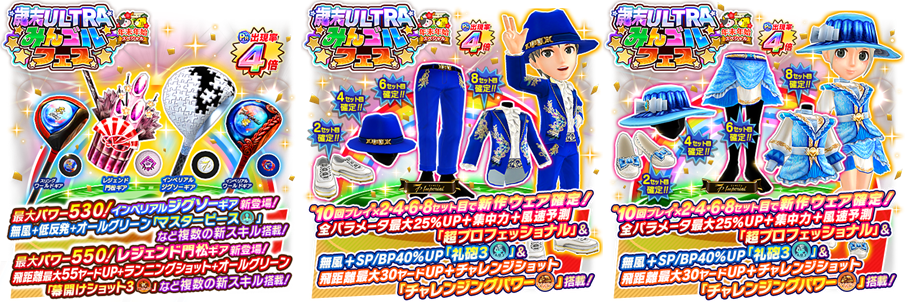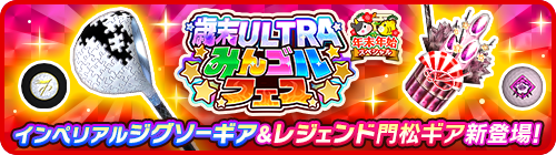 また、同日よりプラチナランク(PR)出現確率が4倍かつ、 限定アイテムが登場する大型ガチャイベント、「歳末ULTRAみんゴルフェス」を開催いたします。