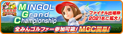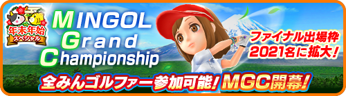 今回のMGCは、年末年始スペシャルキャンペーンを記念し、本戦への参加条件を引き下げ、みんゴルファー全員が本戦へ参加可能となります。さらに、MGCファイナル進出者枠も拡大し、MGC本戦の上位2021名(通常時100名)が進出することができるようになります。