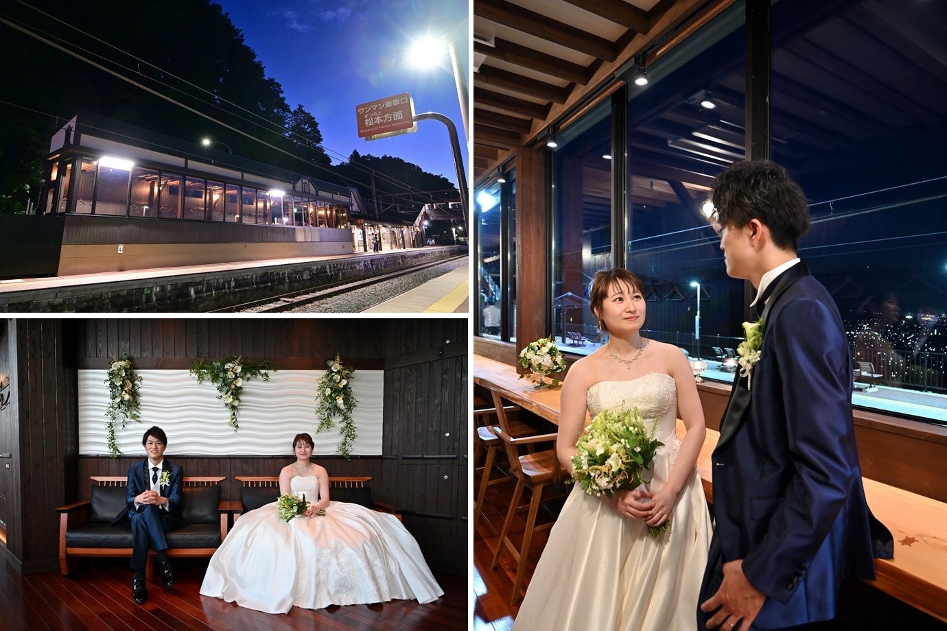 こちらは、ホテル内で行うチャペル撮影に加え、東日本旅客鉄道株式会社(以下、JR東日本)長野支社の協力をもとに日本三大車窓として有名な「JR姨捨駅」(おばすてえき)を撮影場所として使用し、駅のホームから見下ろす善光寺平を背景にした屋外撮影と、「TRAIN SUITE四季島」がJR姨捨駅に停車した際に使用するラウンジ「更級の月」(さらしなのつき)での屋内撮影が含まれたスペシャルプランとなります。
