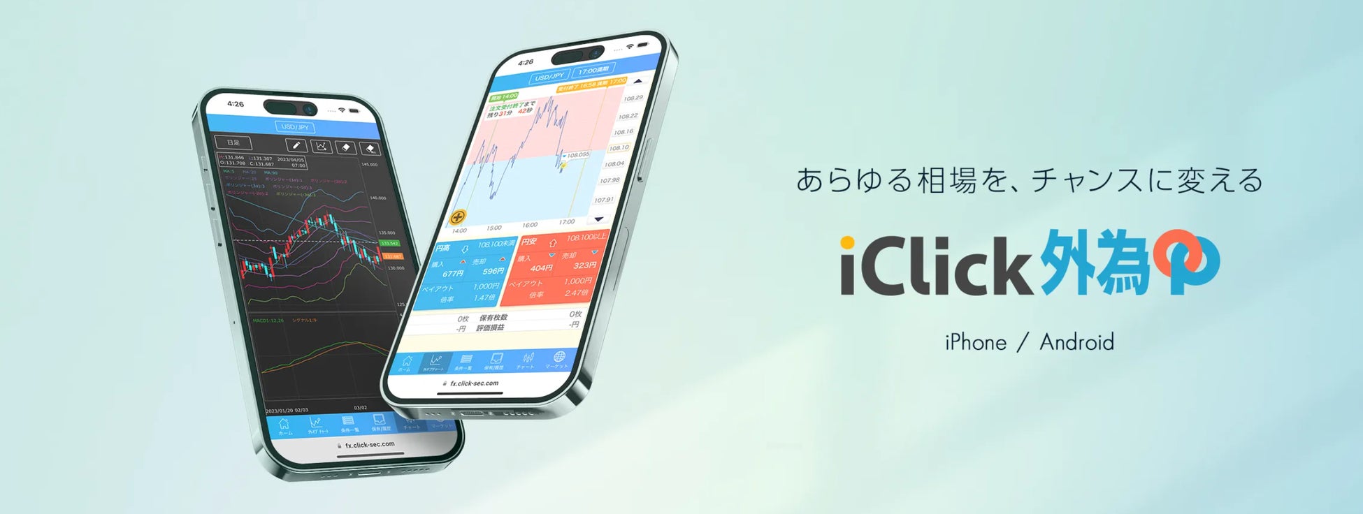 また、直感的な操作性を重視し、初心者の方から上級者の方まで、幅広い層のお客様にとっての「使いやすい」を追求した無料の取引ツール「iClick外為OP」や、登録不要・無料で本番に近いレート・環境でのお取引を体験できる「デモ取引」もご用意しています。