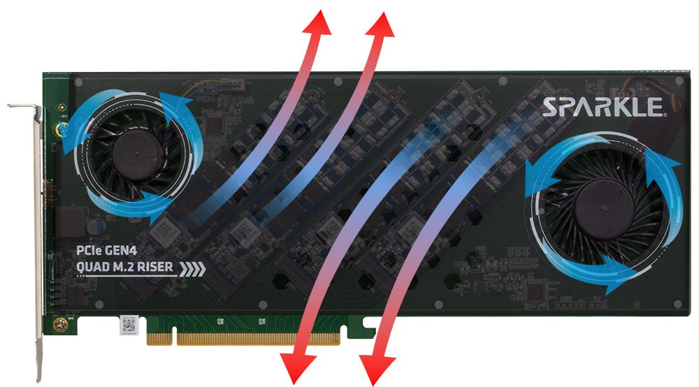 SPARKLEから、PCI Express 4.0接続 M.2 NVMe SSD x4搭載可能な変換基板『PCIe GEN4 QUAD M.2 RISER CARD』発売
