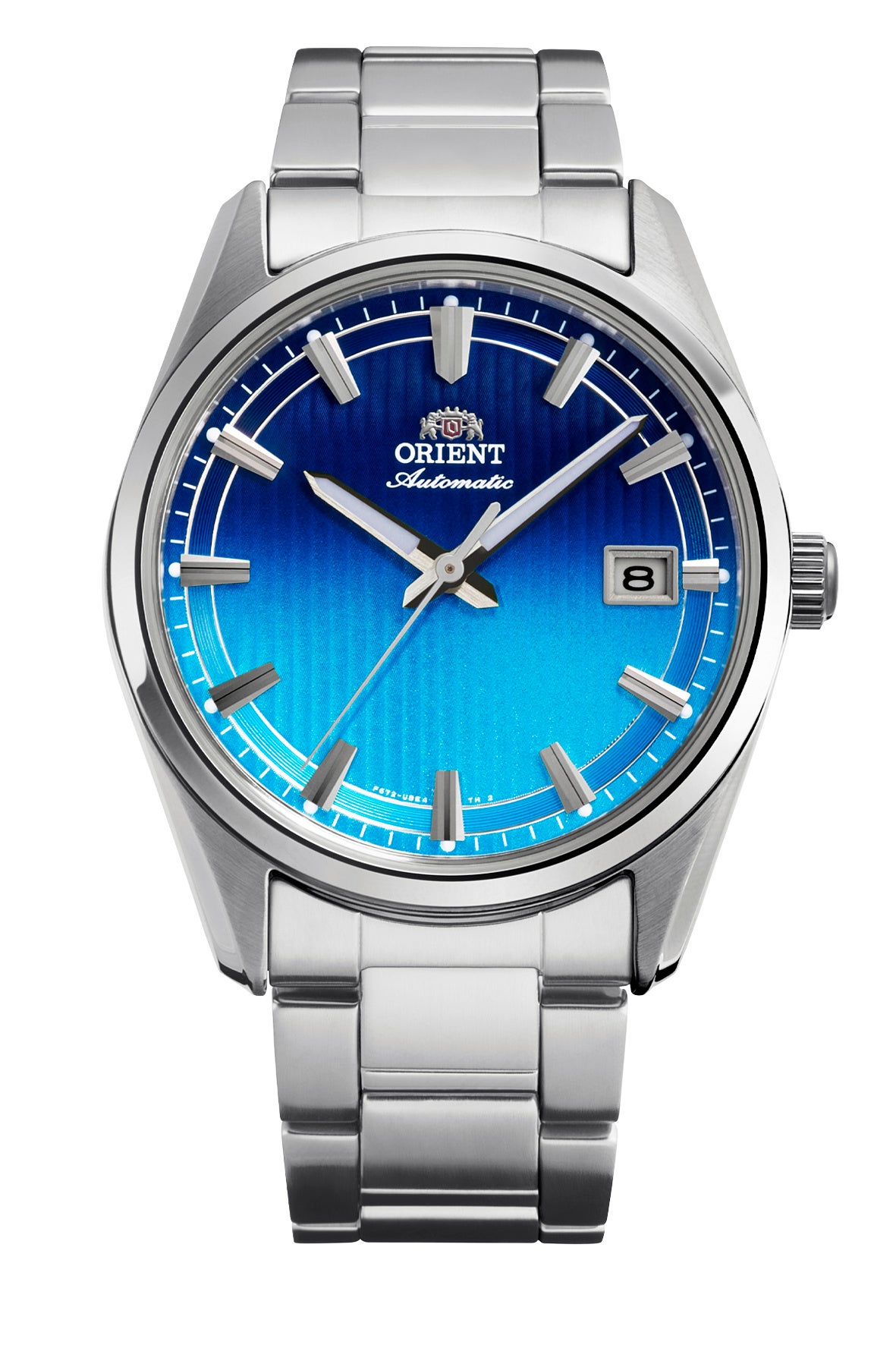 中3針で日付表示が備わる直径38.5mmの『オリエントストレット デイト』は、ベーシックなカラーを採用するこれまでとは一変して、ポップ&メタリックをテーマにした5種類の鮮やかなカラーが取り入れられています。円弧を描く放射仕上げを施し、高層ビルを思わせる立体的な楔型インデックスを配した『オリエントストレット』の特長的な文字板は、26年春夏シーズン限定モデル4種類ではグリーン、ブルー、ピンク、オレンジで彩られ、弾けるような色彩がインパクトを放ちます。そして2,300本の数量限定(国内300本・海外2,000本)モデルの文字板は、型押しのストライプ模様と上下のブルーグラデーションを組み合わせた特別なデザインに仕上げられています。
