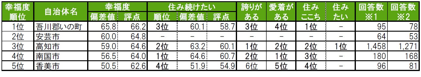 - 「いい部屋ネット 街の幸福度ランキング2022<高知県版>」 主なポイント