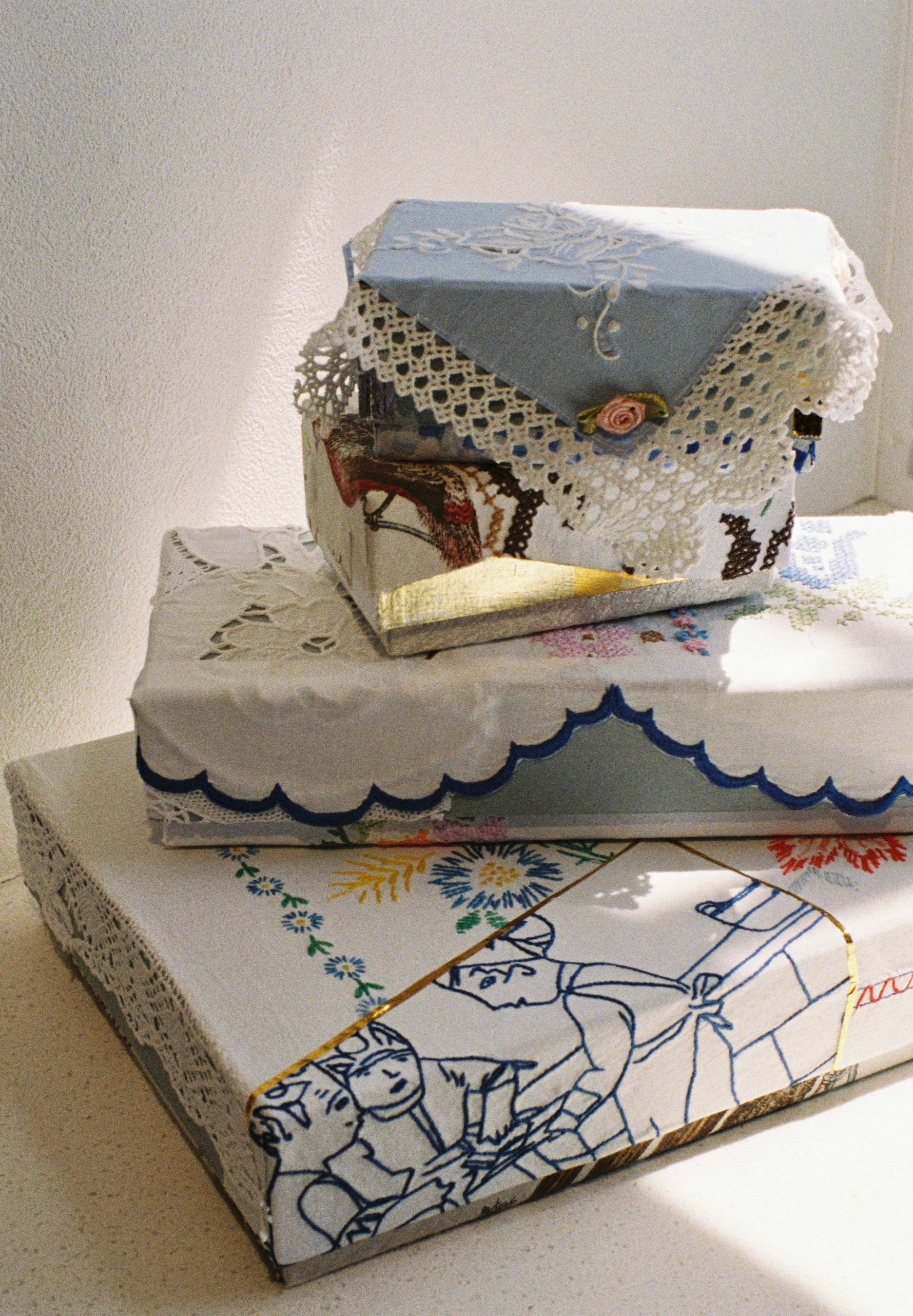 2012年にスタートし、「記憶や時間、経年変化」をテーマに、衣服と工芸、アートの境界を横断する表現を展開している「YUKI FUJISAWA」。特徴的なのは、ヴィンテージのニットや古着、レースなどをベースに、箔加工や染色、刺繍といった手仕事を施す独自の制作手法。時間を経た素材に着目し、箔加工や染色などの手仕事を通して一点物のプロダクトへと再構築。素材が持つ背景や記憶を活かしながら、それぞれ異なる表情を持つアートピースを生み出しています。
