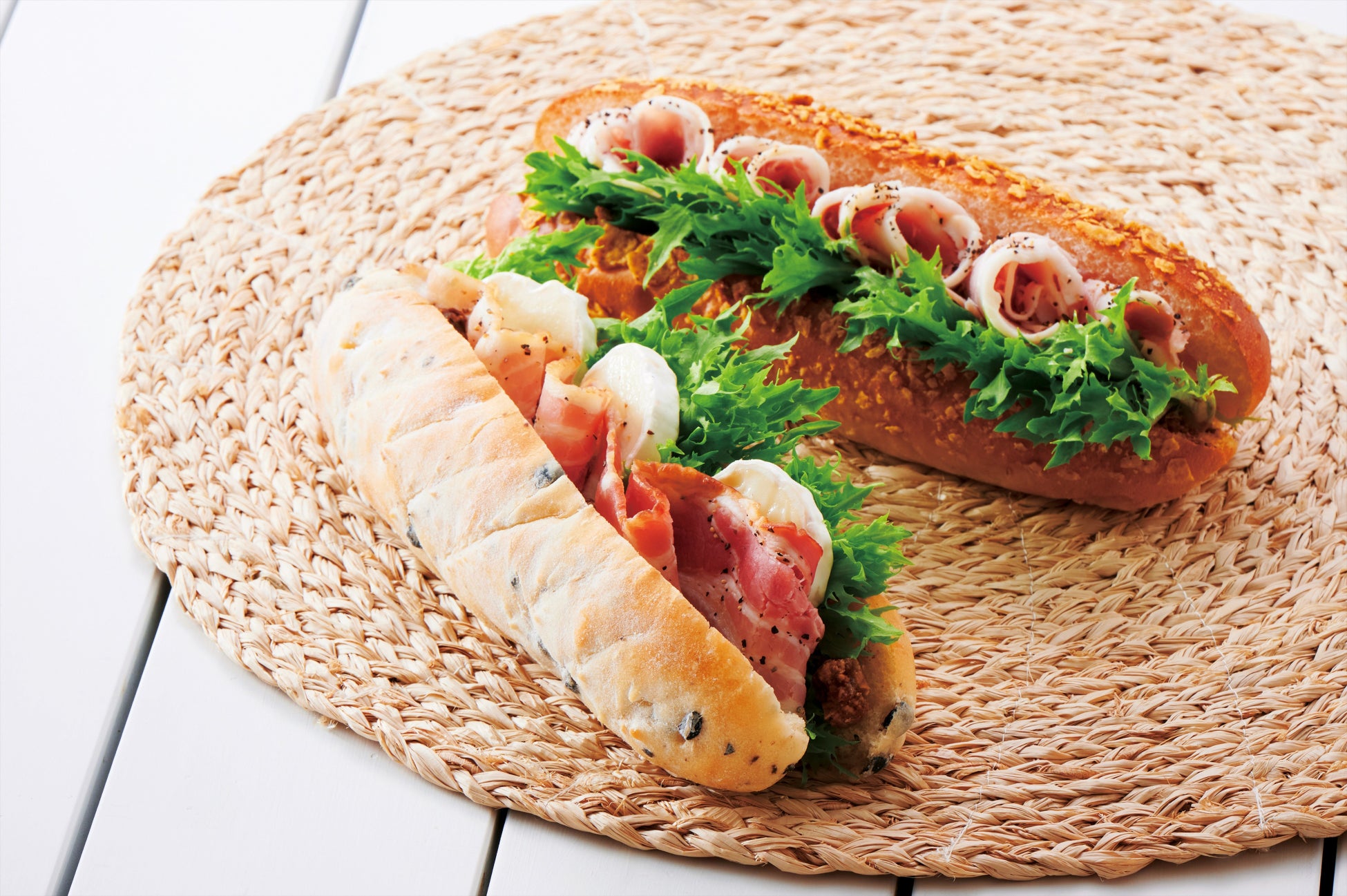 グリルした静岡県産の「牛山ベーコン」とサントモールチーズを挟みました。オリーブを混ぜ込んだパンとの相性は抜群です。