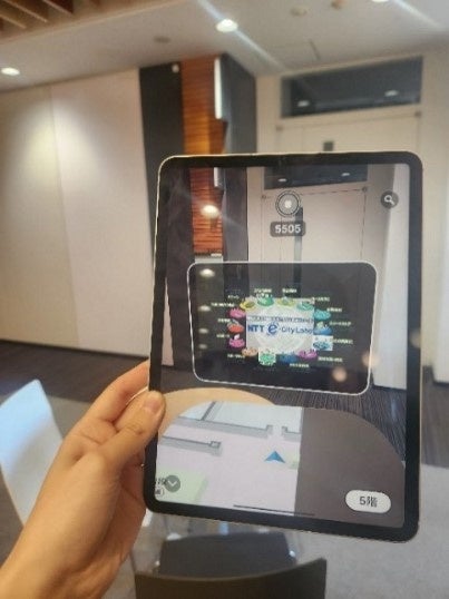 クラウド上に構築したデジタルツインを活用し、来館者の施設内における目的地までのスムーズなナビゲーションを実証予定です。加えて、AR(拡張現実)上で館内店舗の商品紹介やクーポンを表示するプロモーションを行うなど、来館者への新たな施設体験を創出します。また、AR表示するデバイスとして、スマートフォンやタブレットだけでなく株式会社NTTコノキューデバイス製XRグラス「MiRZA(ミルザ)」※2を活用し、XR(クロスリアリティ)とデジタルツインとの連携も検討・実証してまいります。