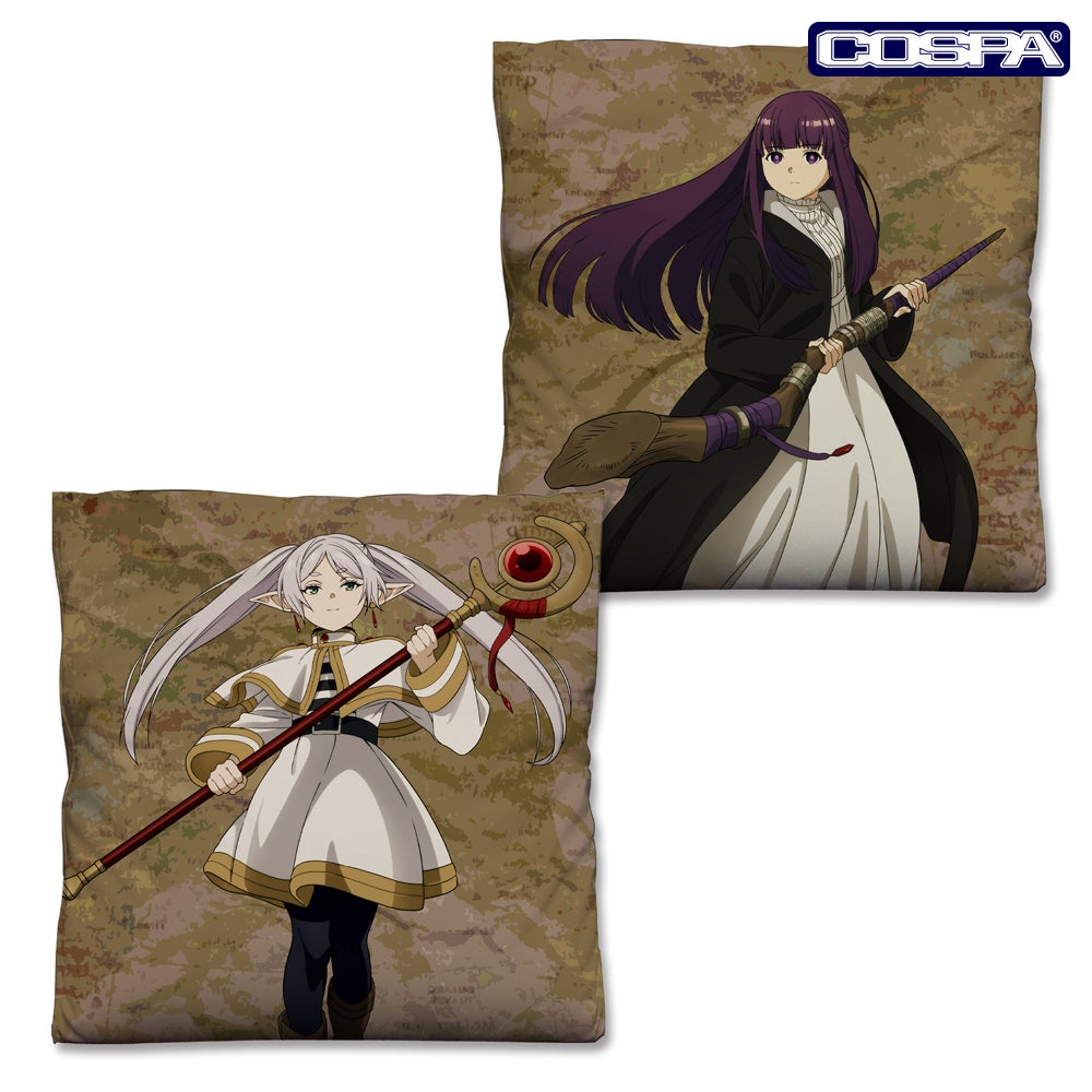 ミミックに食べられるフリーレンのステッカー、両面フルカラープリントで二種類のデザインを楽しめる「フリーレン&フェルン」のクッションカバーがCOSPA(コスパ)から登場。