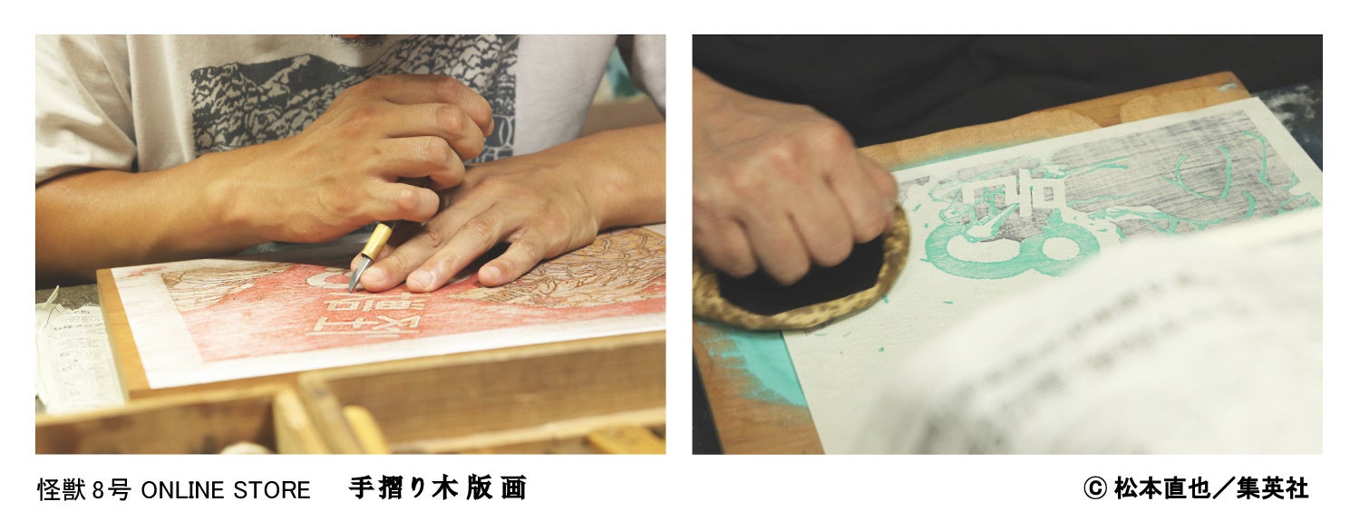 大人気漫画「怪獣8号」の手摺り木版画が登場。京都の伝統工房職人の手仕事による繊細な表現に注目!
