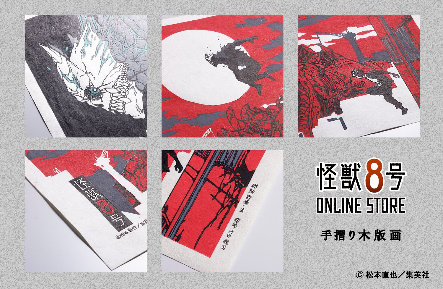 株式会社⼩学館集英社プロダクションは、漫画アプリ『少年ジャンプ+』で連載中の「怪獣8号」デザインの木版画を、ご当地食品・地域名産品を取り扱う公式通販サイト「怪獣8号 ONLINE STORE」( https://kaiju8-jpmd-store.jp )にて予約受付を開始します。