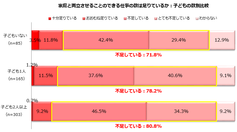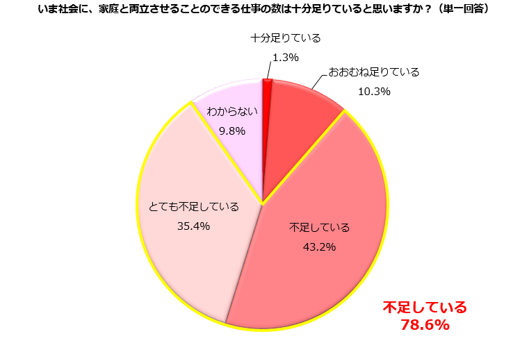 1.家庭と両立させることのできる仕事の数は「不足している」78.6%