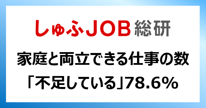 岸田政権への提言!主婦・主夫層に聞く、仕事と家庭を両立させる上で最も必要なことは?「条件に合う仕事」84.1%|家庭と両立できる仕事の数「不足している」78.6%