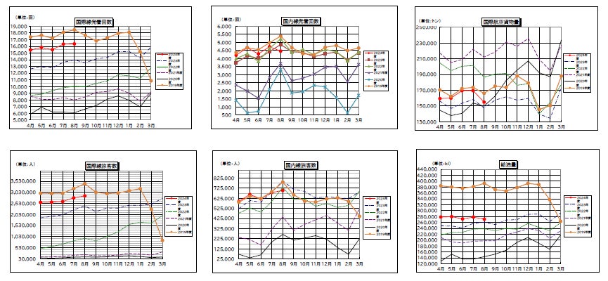 ●国内線については、旅客数が70.2万人(2019年同月比90%)で、発着回数は4,160回(2019年同月