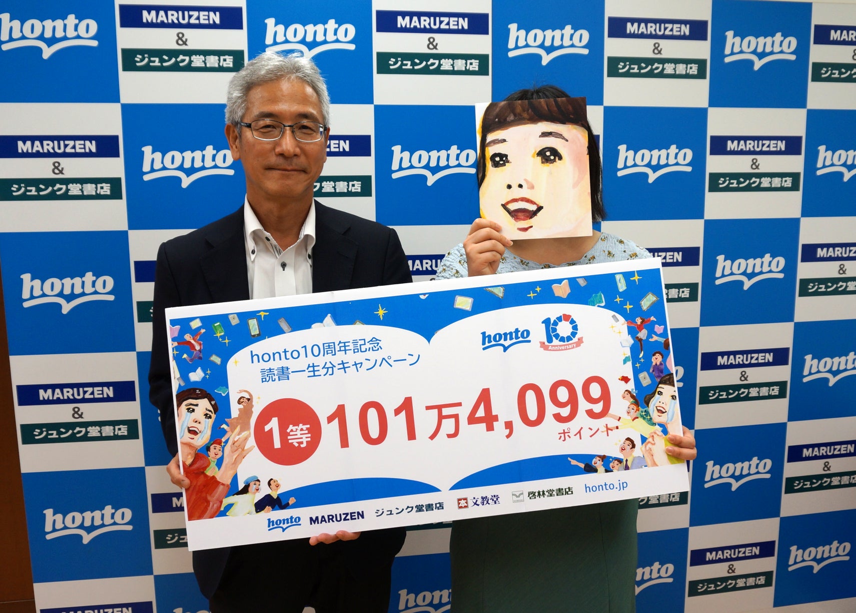 「読書一生分プレゼントキャンペーン」は読書一生分相当のhontoポイントを抽選で1名様にプレゼントするキャンペーンで、2016年から過去6回実施してきました。7回目の開催となる今回は、hontoサービス開始10周年を記念し、初開催から6年振りに当選者をお招きして授与式を行いました。