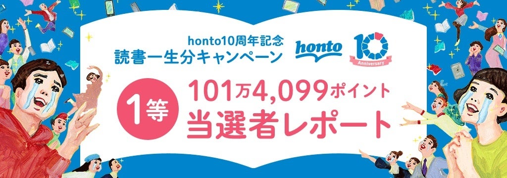 honto10周年を記念して開催した今回の読書一生分キャンペーンは、過去最多の応募者数となり、たくさんの方にご参加いただけたことを、関係者一同大変ありがたく思っております。今後も本好きのお客様に喜んでいただけるような企画を検討・実施してまいりますので、引き続きhontoをよろしくお願いいたします。