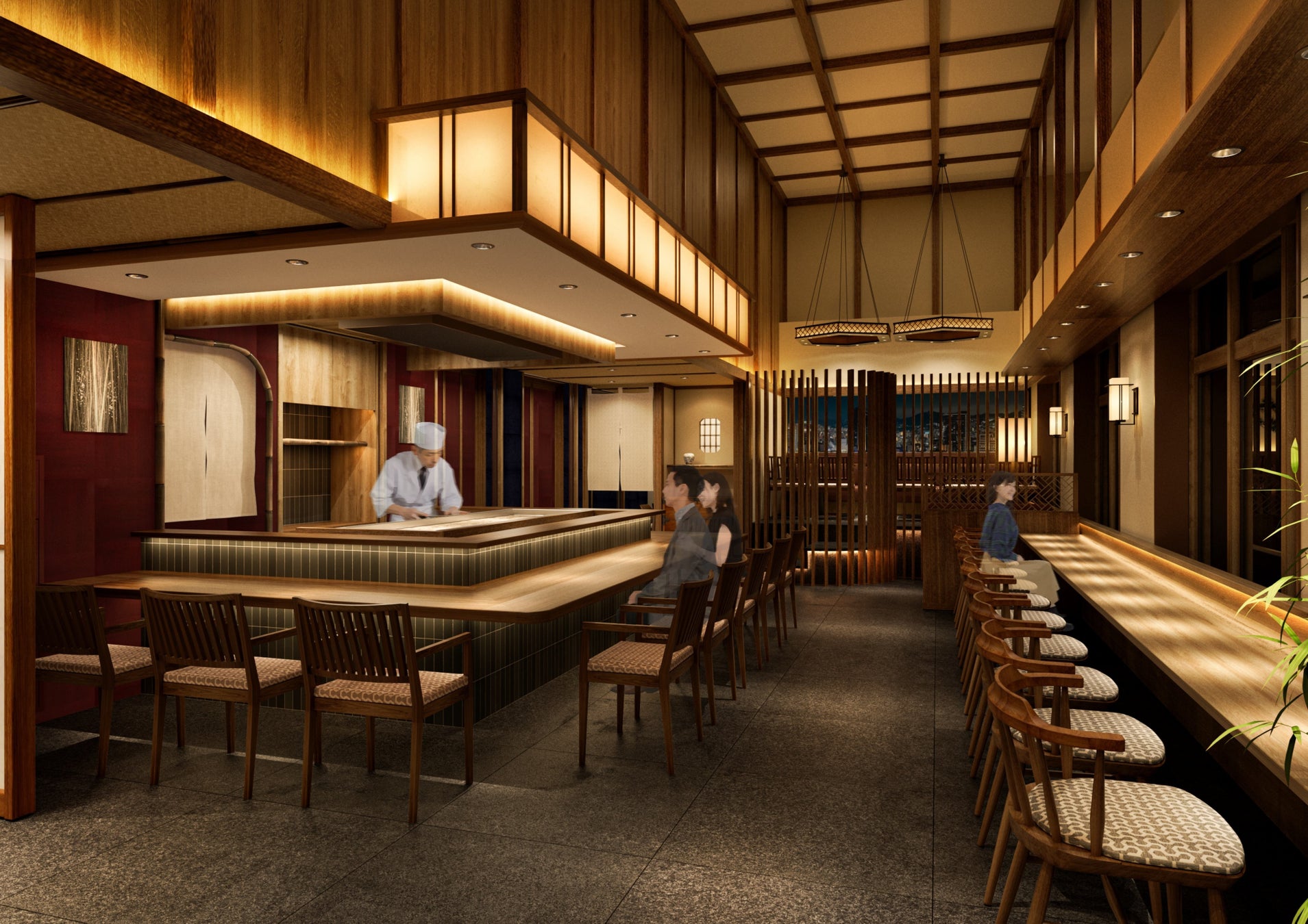 店内は、焼き台カウンター9席、半個室4ブース、1名様~4名様に対応する窓側席など全93席あり、8名様~最大40名様までの会食にも対応できる空間と宴会プランで様々なお客様のご要望にお応えする。