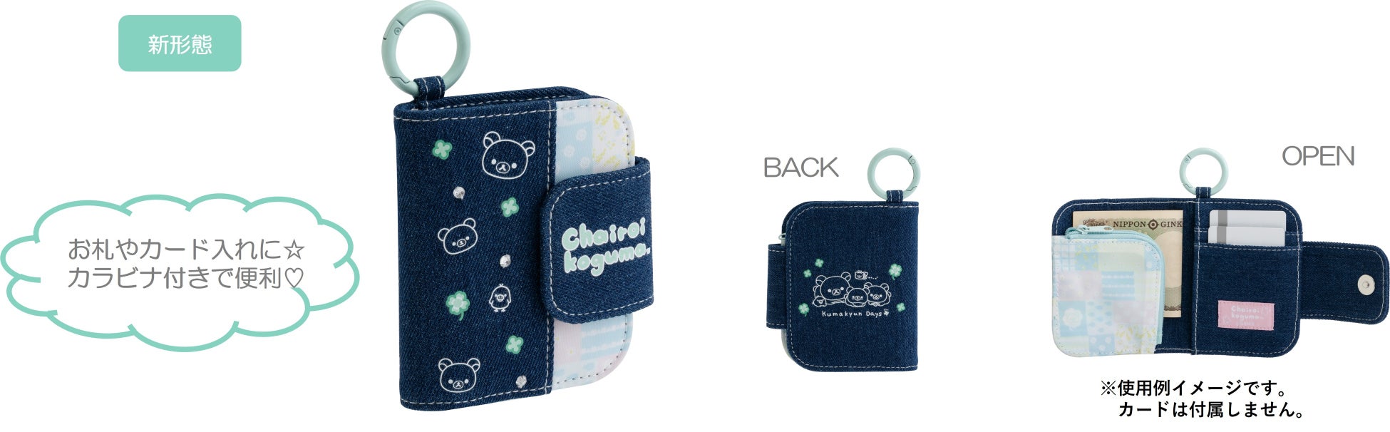 ・カラビナ付ミニワレット(2,750円※税込):ポリエステル+デニム生地・マグネットボタン付