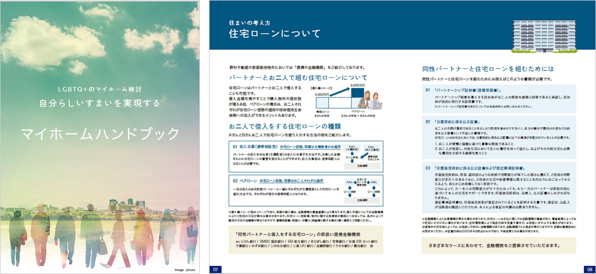 野村不動産株式会社(本社:東京都新宿区/代表取締役社長:松尾 大作 、以下「野村不動産」)は、このたび「LGBTQ+のマイホーム検討 自分らしいすまいを実現するマイホームハンドブック(以下「本ハンドブック」)」を新たに制作し、オンライン上で公開を開始したことをお知らせします。本ハンドブックは、同性パートナー同士での住宅ローン、セクシュアリティに関するカミングアウト等、LGBTQ+当事者の方が住宅購入を検討する際の情報を集約し、マイホームを持つ未来を考えるきっかけにしていただくためのものです。