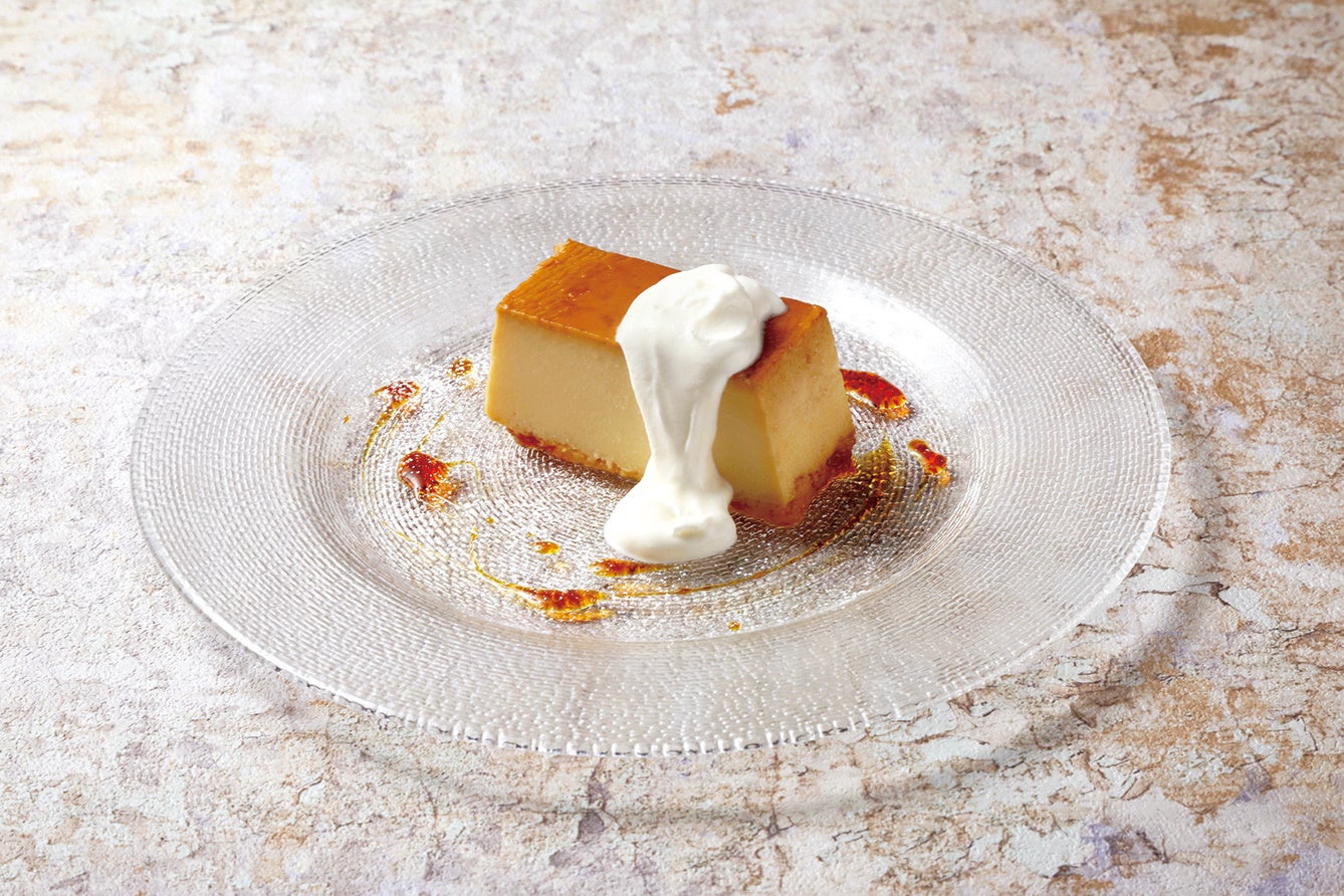 もうひとつの新メニュー、店舗で丁寧に焼き上げる⾃家製スイーツ「北海道産⽣クリームのブディーノ」は、⽇本でもトレンドの”固めプリン”です。北海道産の⽣乳を使⽤した⽣クリームとクリームチーズがたっぷりの、まるでチーズケーキのように濃厚でリッチな味わいのプリンに仕上げました。
