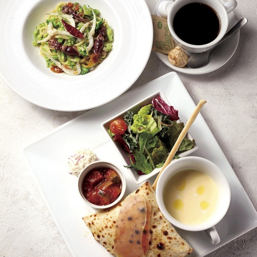 ふっくらとした⽩⿂とホタルイカの軽やかな苦味が春らしい⼀⽫です。こちらは、単品だけでなくワンプレートに盛り込んだ前菜5種とドリンク付きの「季節のピアットウニコ」としてもご⽤意しております。