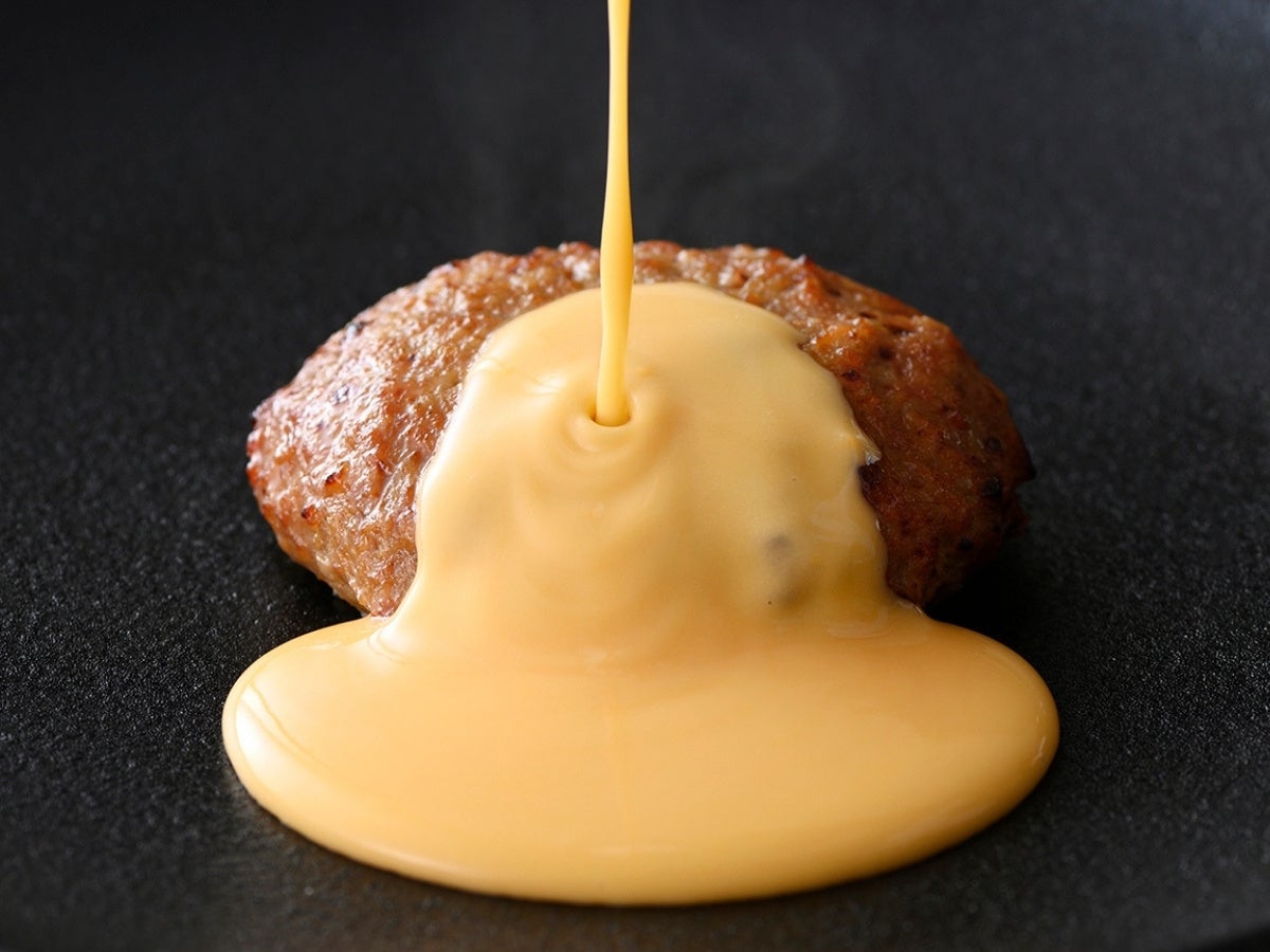 ジューシーで旨味たっぷりの肉汁と、12種類ブレンドした濃厚なチーズが溢れる、現在ご提供中のチーズインハンバーグに、爽やかな酸味とマイルドな味わいの『チーズソース』を上からたっぷりと!
