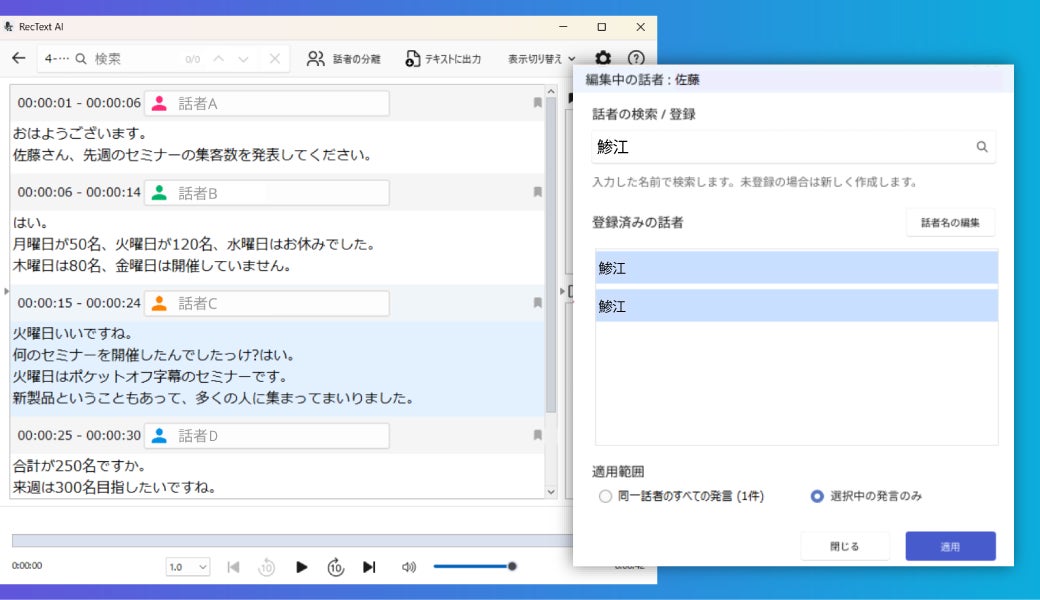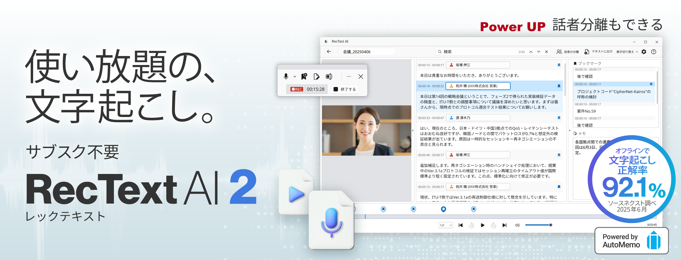話者分離機能を新搭載した、買い切り型AI文字起こしソフト「RecText AI 2」3月31日(火)新発売