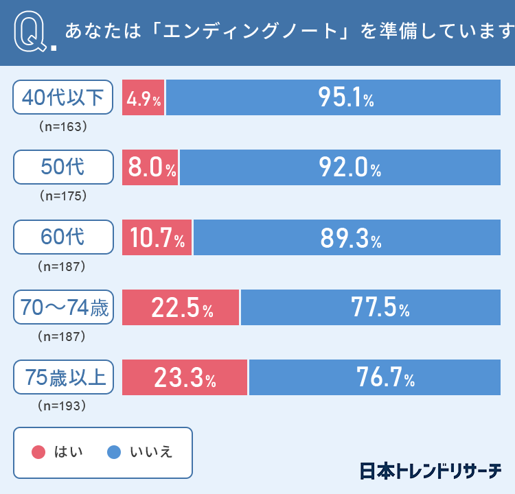 現在、エンディングノートを用意していない方も多くいらっしゃいます。