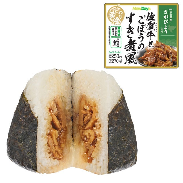 佐賀県の銘柄牛である佐賀牛と、ごぼうをすき煮風に甘辛く味付けし、ご飯でふっくら包みました。