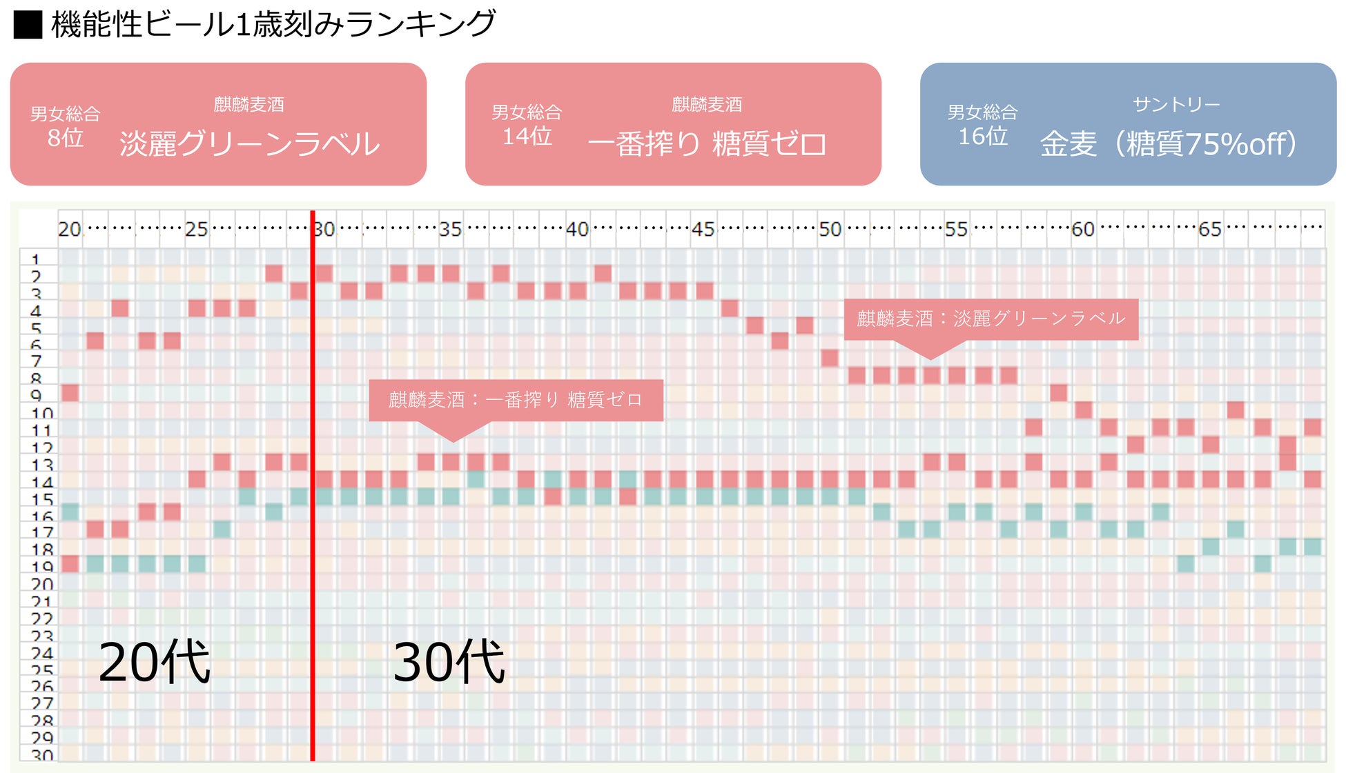 - 【機能性ビールジャンル・年齢別購買ランキング】30代からの健康意識で機能性ビールがランクアップ