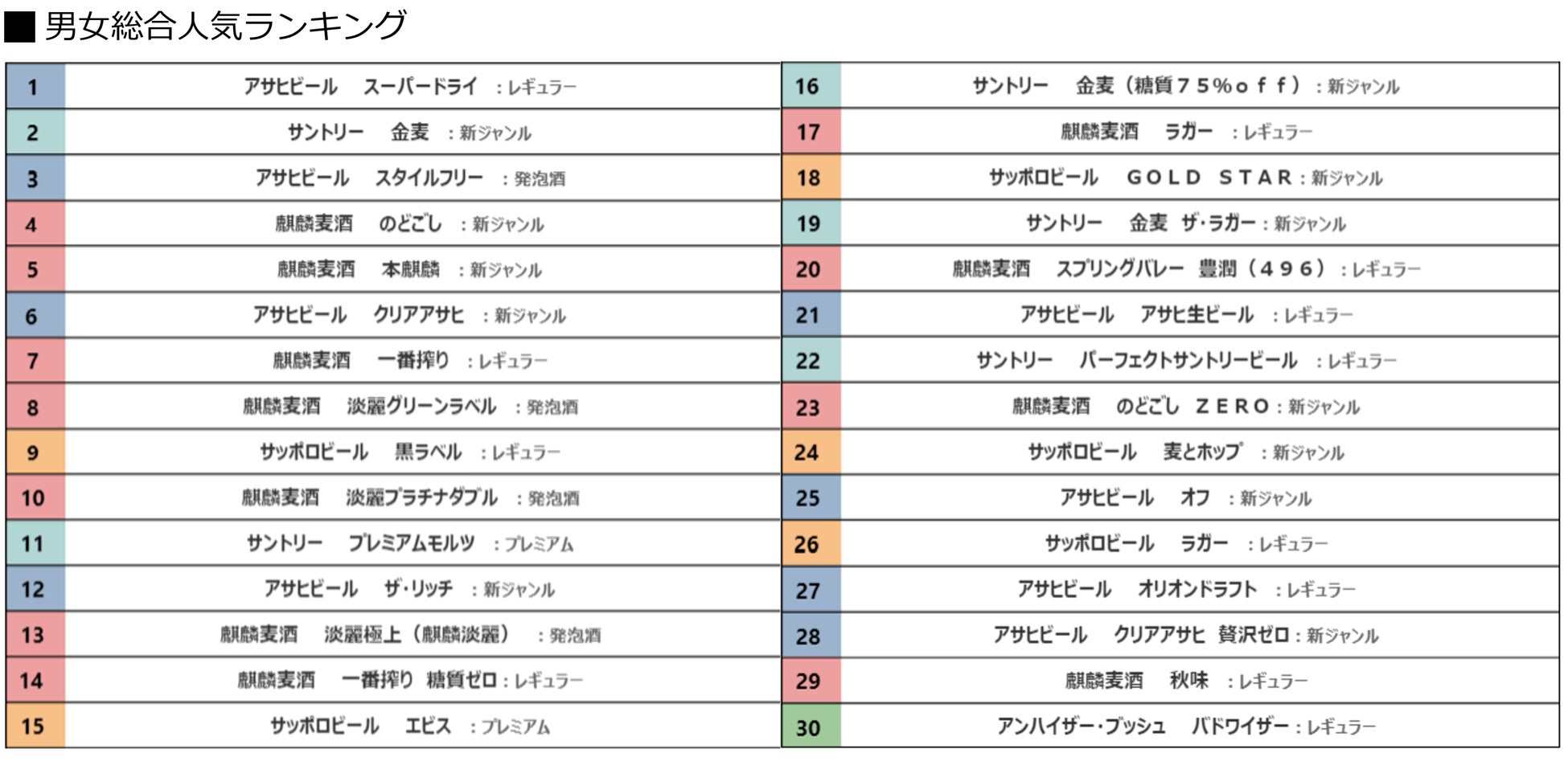 - 【男女総合・購買ランキング】ビールの総合ランキング(TOP30)