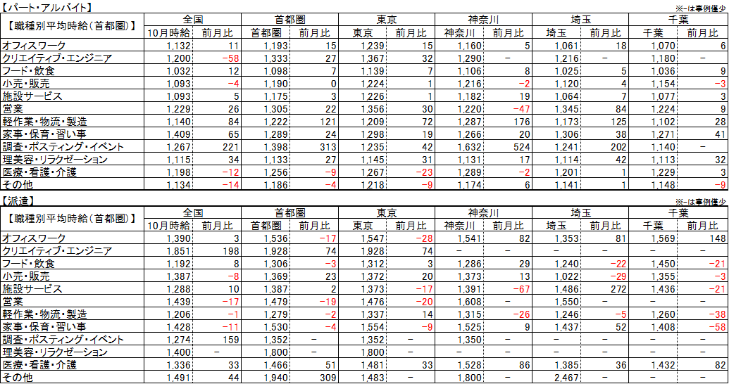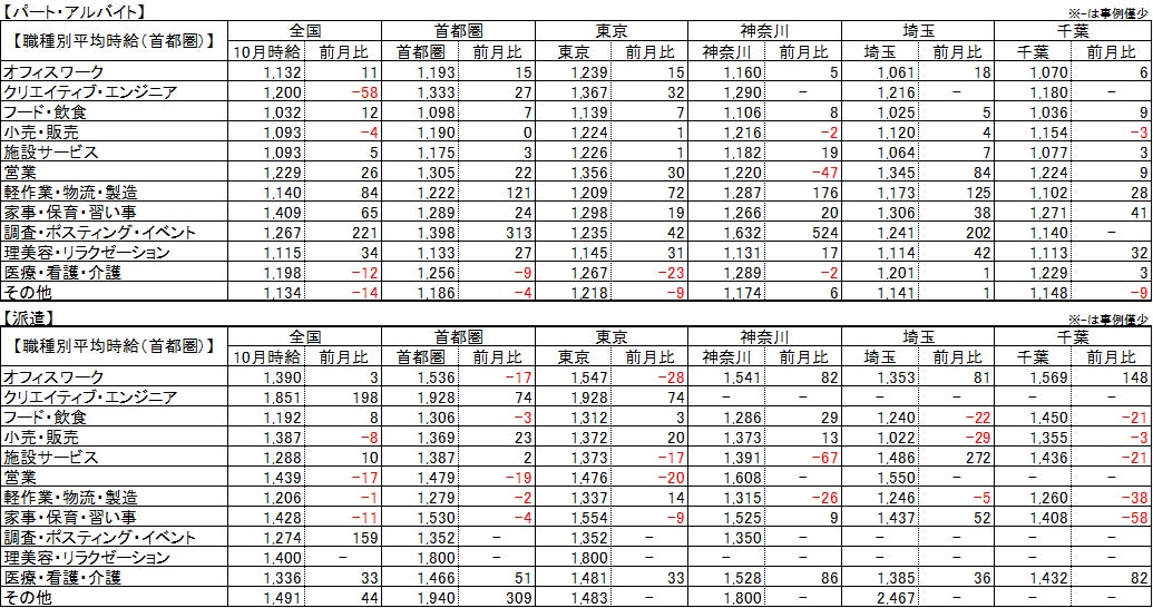 | 【調査概要】 元データ:しゅふJOBに掲載された求人情報の時給データ エリア:北海道・東北/北海道、宮城県、青森県、岩手県、秋田県、山形県、福島県 北関東/栃木県、群馬県、茨城県 首都圏/東京都、神奈川県、千葉県、埼玉県 甲信越・北陸/山梨県、長野県、新潟県、石川県、富山県、福井県 東海/愛知県、三重県、岐阜県、静岡県 関西/大阪府、兵庫県、京都府、奈良県、滋賀県、和歌山県 中国・四国/広島県、岡山県、山口県、島根県、鳥取県、香川県、徳島県、愛媛県、高知県 九州・沖縄/福岡県、佐賀県、長崎県、熊本県、大分県、宮崎県、鹿児島県、沖縄県 職種:しゅふJOB職種分類に準拠 ※本リリースの引用の際は、 必ず「しゅふJOB調べ」とクレジットを明記していただきますようお願い申し上げます。 Webサイトのリンクを設定いただける場合は、こちらのURLをご記載ください。 https://part.shufu-job.jp |