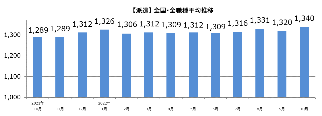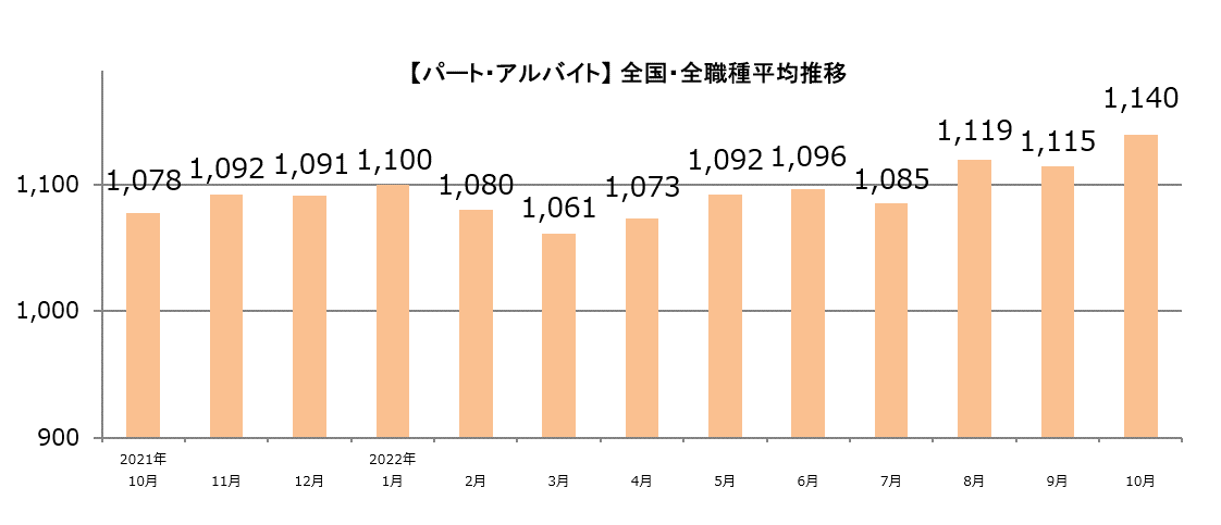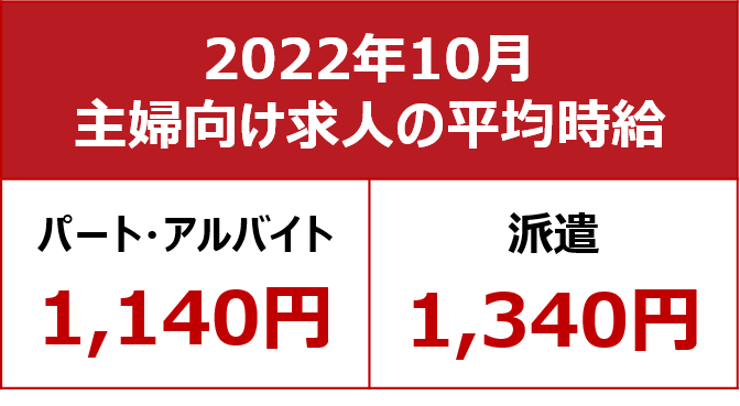 【2022年10月 主婦求人の平均時給】パート・アルバイト:『1,140円』、派遣:『1,340円』