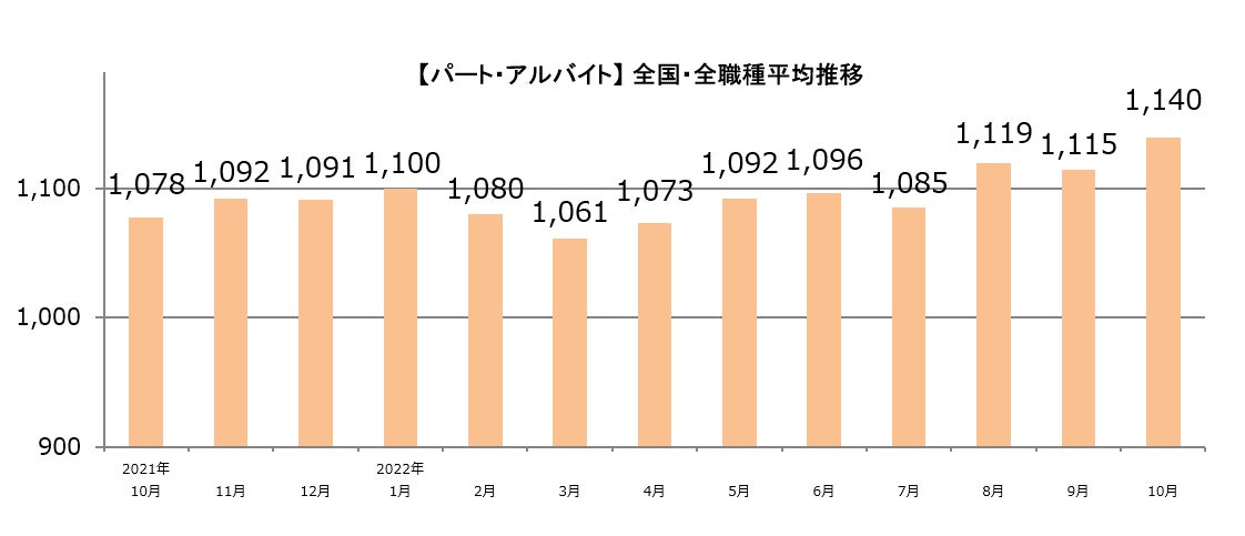 ビースタイルグループで主婦に特化した求人サイト『しゅふJOB』を運営する株式会社ビースタイル メディア(本社:東京都新宿区、代表取締役社長:石橋聖文)は、掲載された求人情報の時給データから算出した『平均時給』の2022年10月分を集計しました。