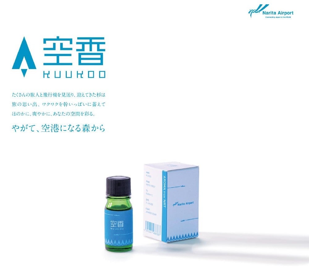 成田空港オリジナルアロマオイル 「空香 -KUUKOO- 」 は、これまでにたくさんの旅人と飛行機を見送り、迎えてきた杉材を100%使用しており、その爽やかな香りからは、旅の思い出や空港のワクワク感を感じることができます。
