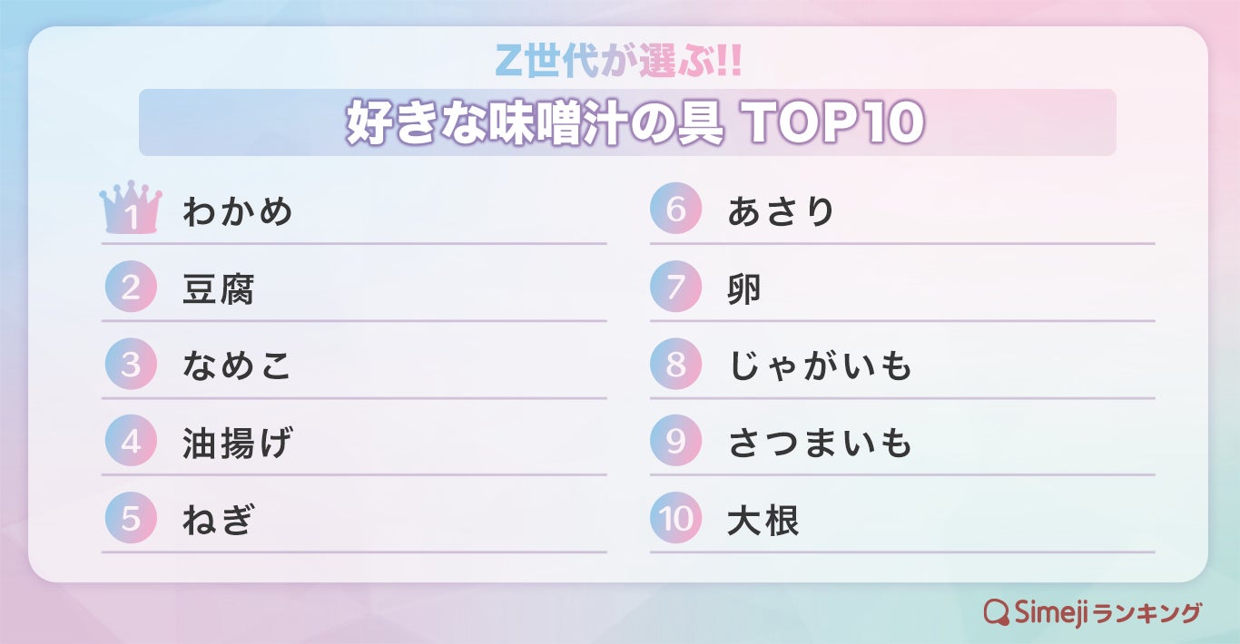 【Simejiランキング】Z世代が選ぶ!!「好きな味噌汁の具TOP10」