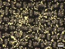 ポリエステルなどの高密度に織られた凹凸が少ない平らな生地表面に特殊な加工を施し、生地に花粉が付着しにくく、付いた花粉も落ちやすくしています。