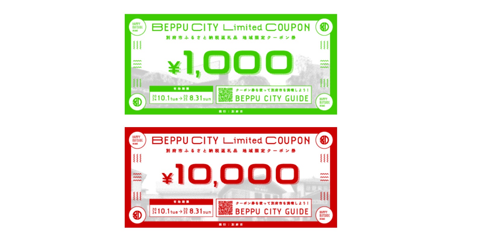 また、ふるさと納税返礼品は「HAPPY OUSIDE BEAMS」が、別府市の伝統産業である竹細工をプロデュースいたしました。それに加えてデジタルガイドに掲載されている一部のスポットで利用出来るクーポンとなります。