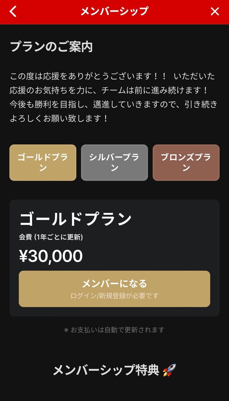 メンバーシップ機能からファンクラブ会員になって頂くと、チームから特別なグッズをお届けします!