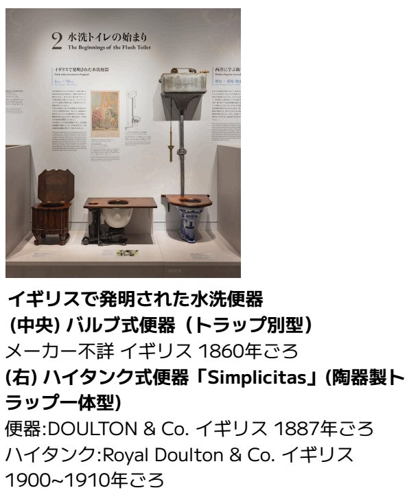 清浄性をトイレに求めた日本の精神を背景に、「トイレ」の原点から、西洋の進んだ技術を取り入れて独自に発展し現代に至る日本のトイレの変遷を、時代に沿って一望できる展示空間。