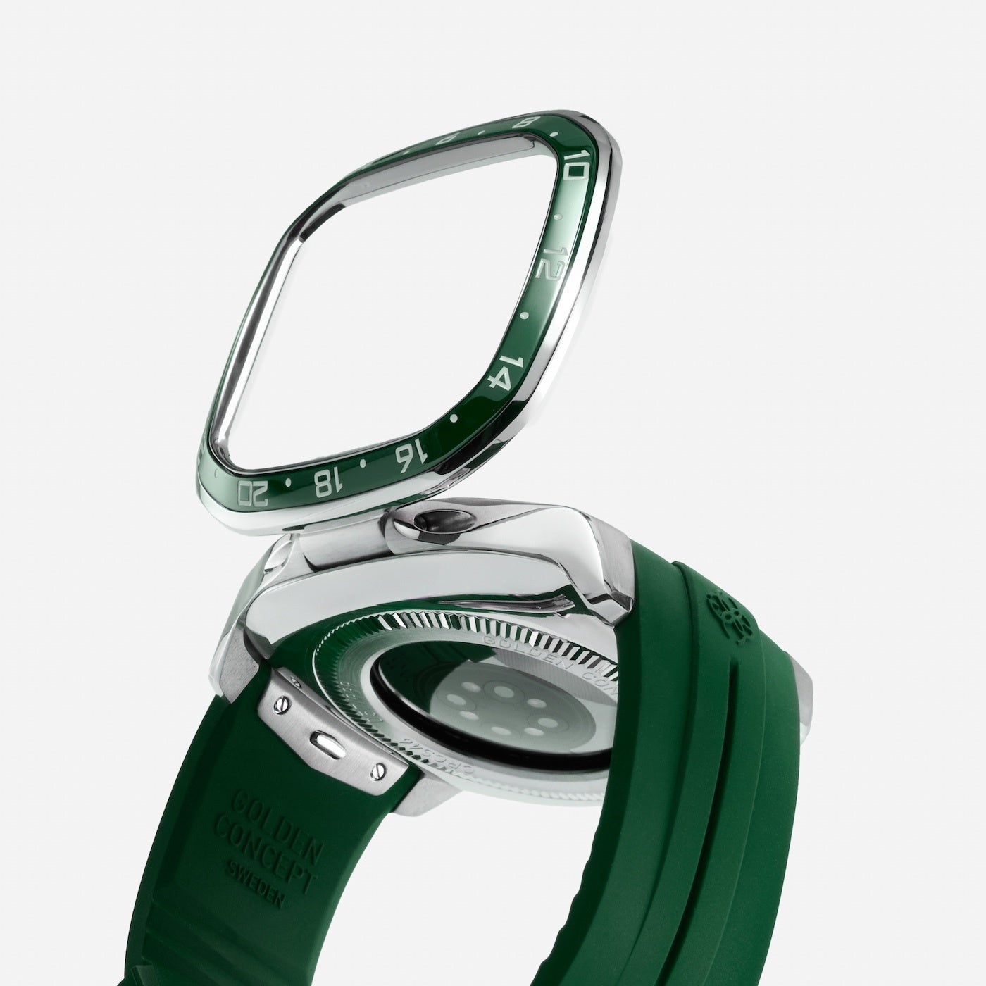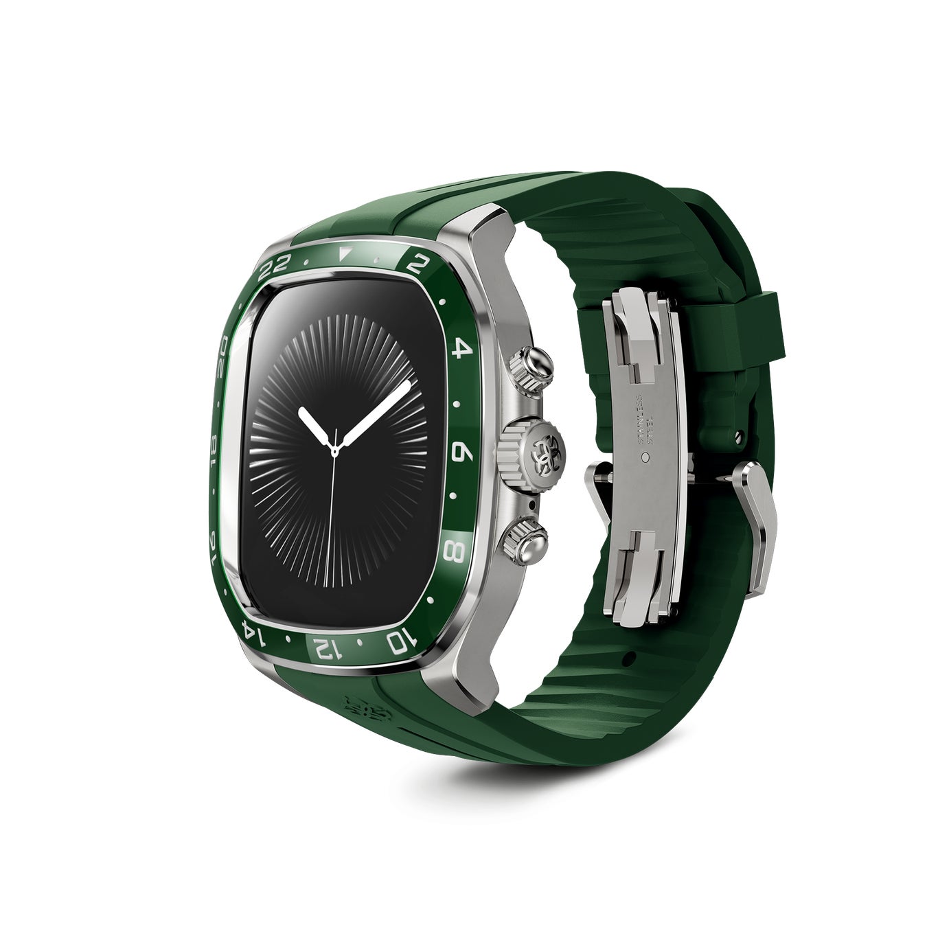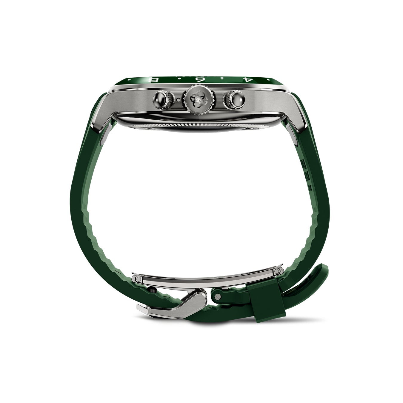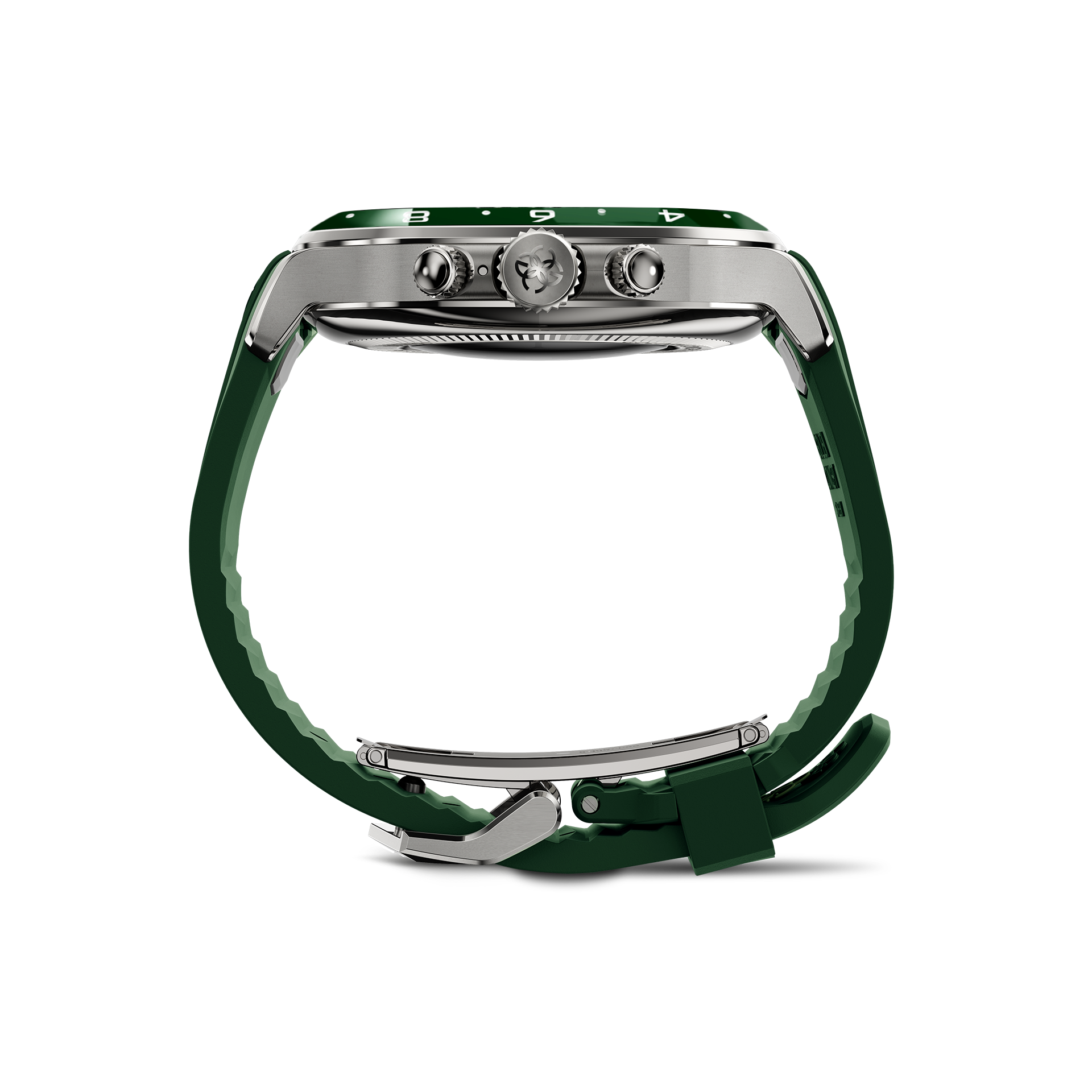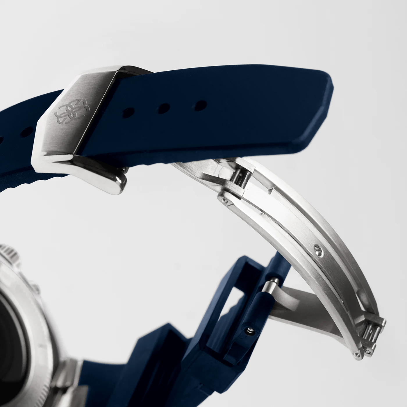 深みのあるブルーと、気品あふれるグリーンのフルオロエラストマーストラップを採用し、クラウンエディションの上品なスタイルはそのままに、よりスポーティで洗練された印象へと進化しました。
