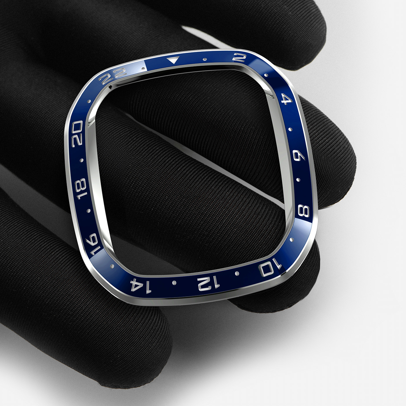 ベゼルには高品質なセラミックを採用。繊細な光沢と質感を放ち、刻まれたテキストや装飾は熟練の職人によって一つひとつ手作業で彫刻・塗装されています。その精緻な仕上がりは、まるで高級時計を思わせる風格を漂わせます。