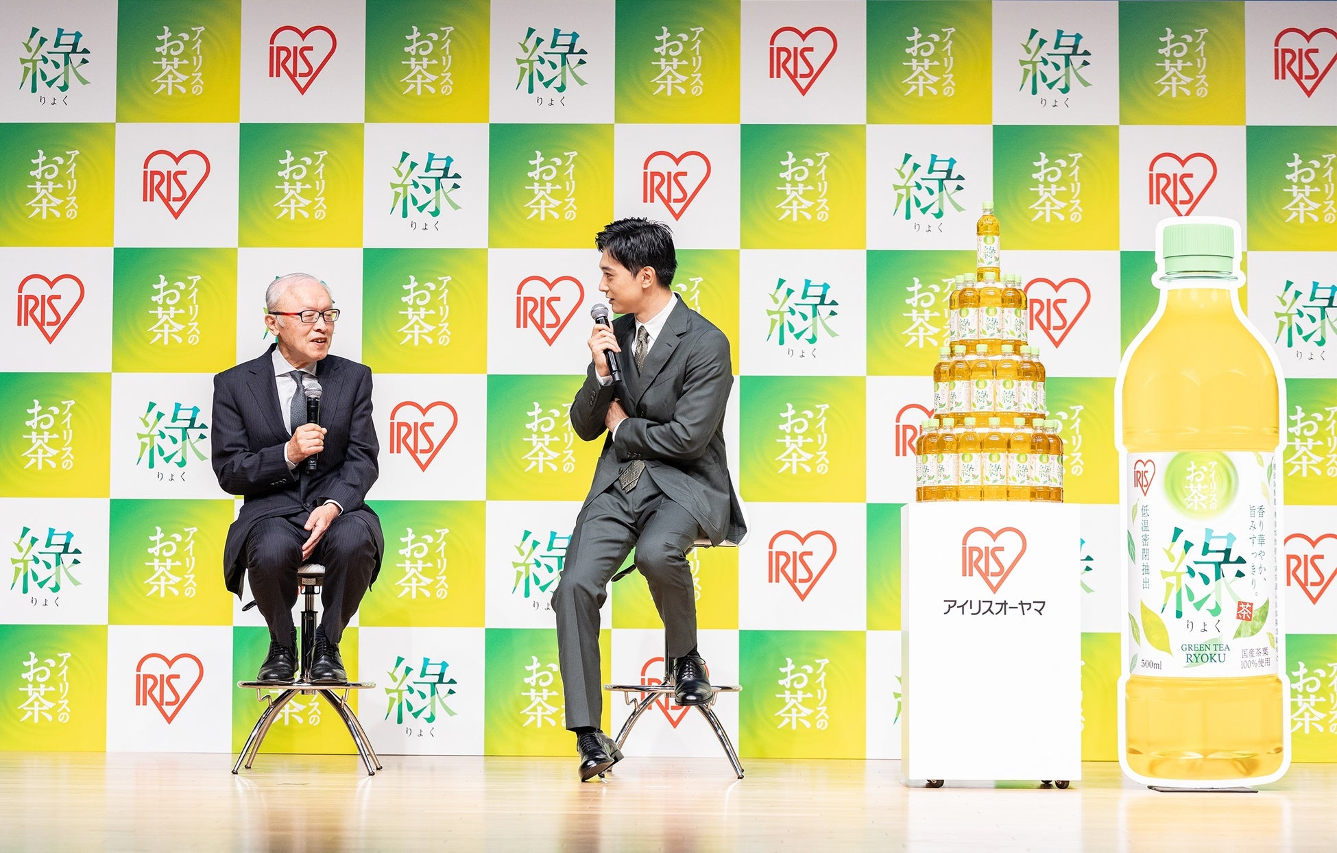 アイリスオーヤマ株式会社(本社:宮城県仙台市、代表取締役社長:大山 晃弘)は、2025年6月2日に、新商品「アイリスのお茶 綠(りょく)」の発売に伴い、東京都内にて新商品発表会を開催しました。イベントでは、当社執行役員 勝間 浩之による市場参入の背景や新商品の説明のほか、本商品のブランドアンバサダーに就任した吉沢 亮さんが登壇し、緑茶にまつわるトークセッションを行いました。