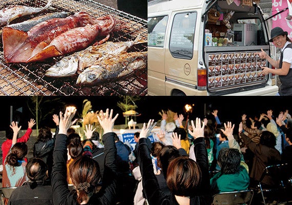 ライブ前には、北川名物の定置網漁で獲れた魚の炭火焼の振る舞い「ねこさい」があり、いか焼きやクレープなどの屋台も登場。(※ねこさいとは方言で「定置網」のこと)