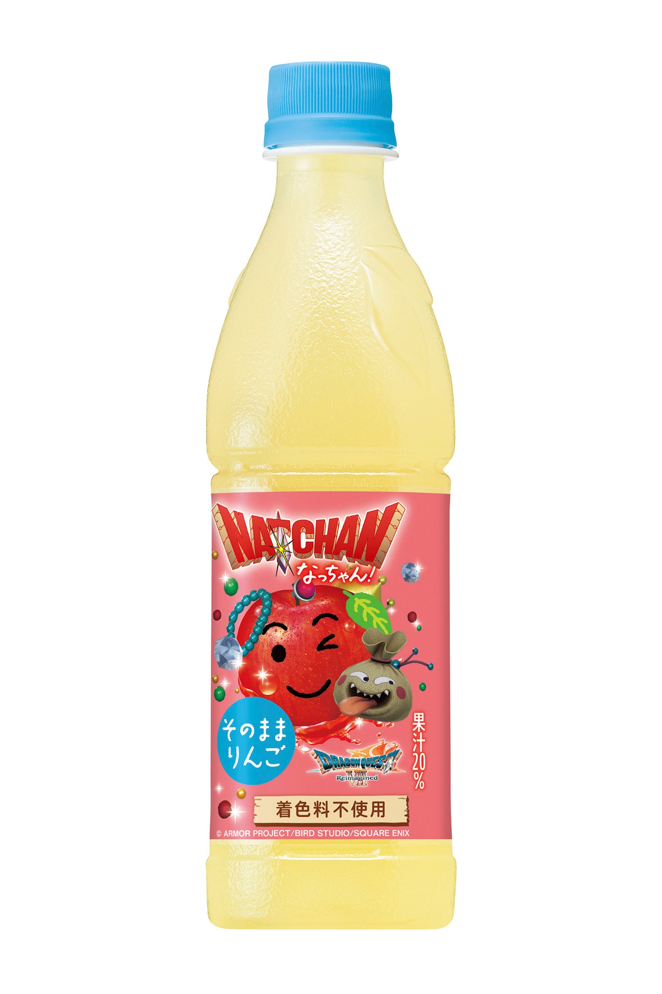 スライム8体が合体してキングスライムになる様子を表した「C.C.レモン」ボトル、スライムナイトのスライム部分がりんごになった「なっちゃん りんご」ボトルなど、「ドラゴンクエスト」の世界観に合わせてデザインしています。