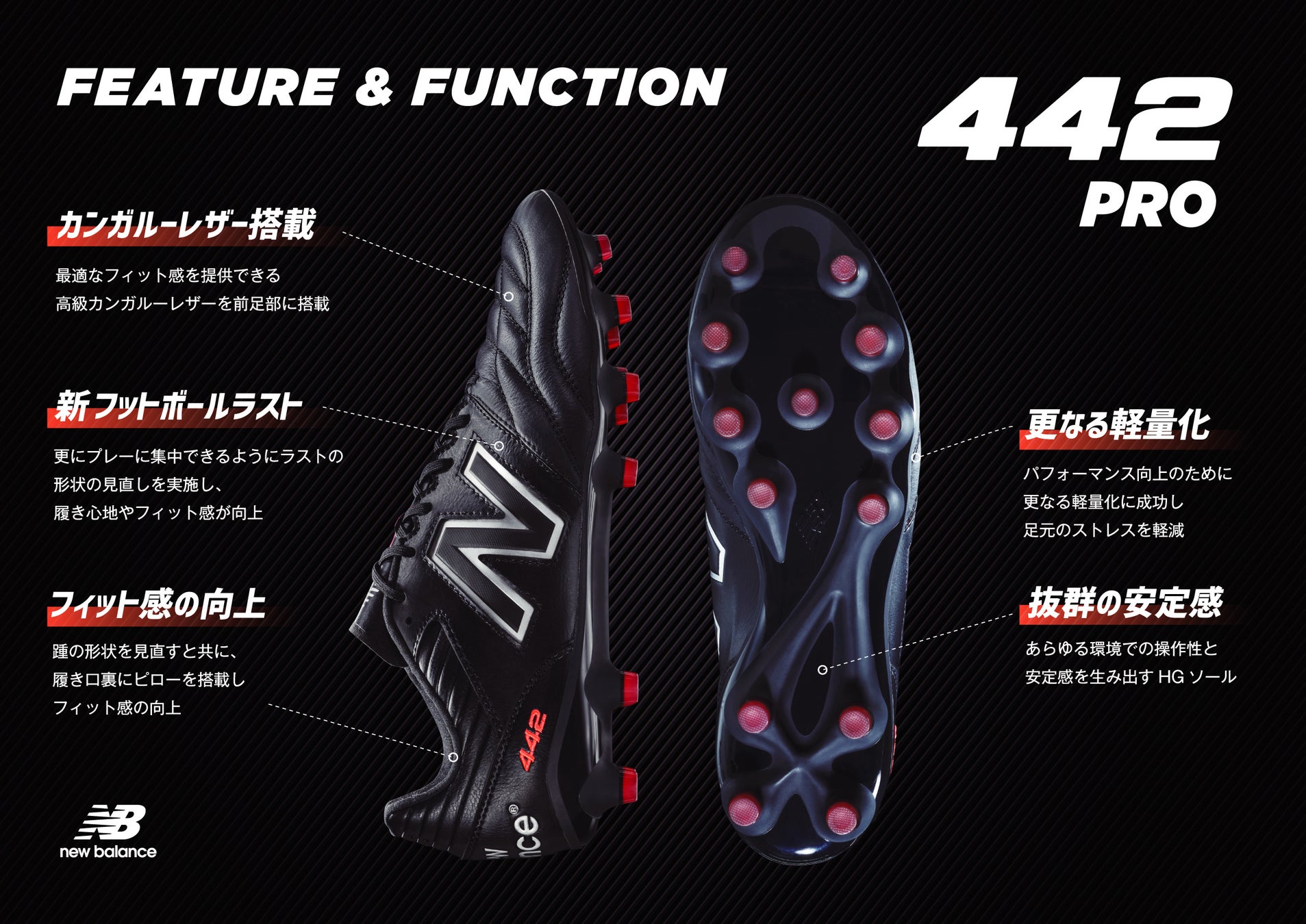 https://shop.newbalance.jp/shop/e/eEnb-442今回は442 PRO HGモデルと同時に、天然皮革らしい足なじみの良さと耐久性を両立したフルグレインレザーを前足部に搭載した442 TEAM HGや、その他442 Team TF(ターフシューズ)、442 Team ID(インドアシューズ)なども発売。今まで以上に履き心地が良くなった新しい442シリーズを是非お試しください。
