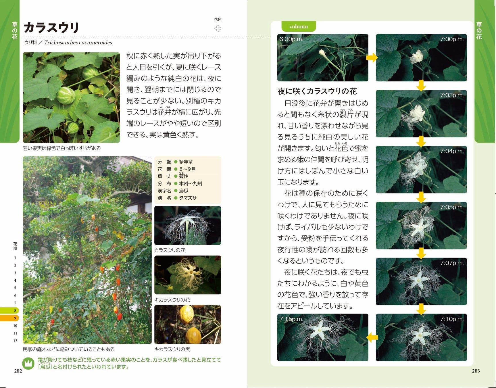 街や公園、里山を歩くなかでふと目にとまる四季折々の花。本書は、身近な植物を「庭の花」「草の花」「樹の花」の3つのグループに分け、わかりやすく紹介する一冊です。