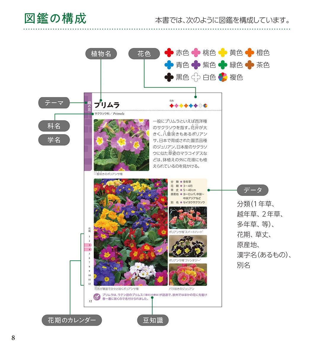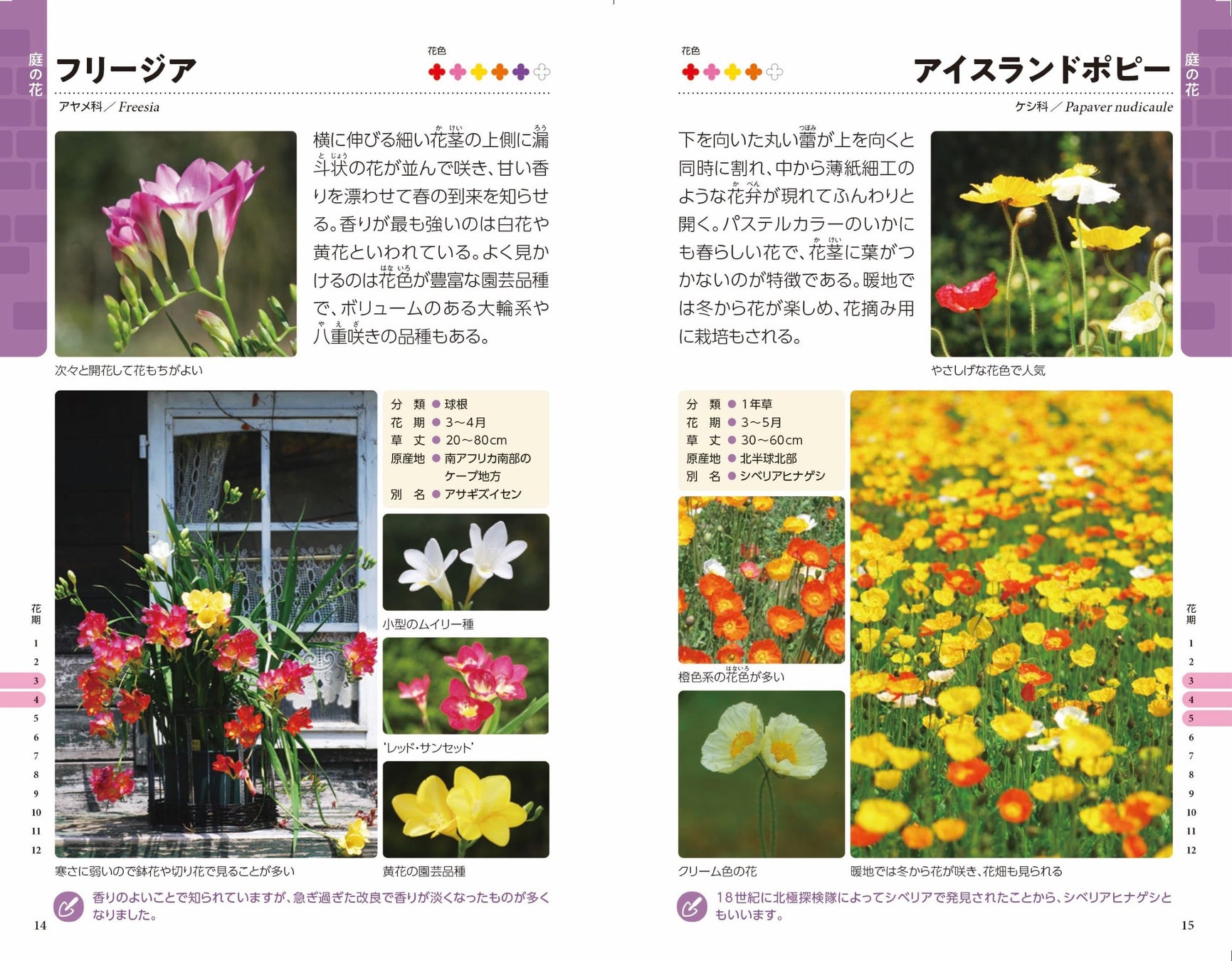 住宅地の庭、道端、公園などでよく見かける四季折々の花を「庭の花」「草の花」「樹の花」に分けて紹介。APG分類体系に準拠|最新の学名を採用|574種収録