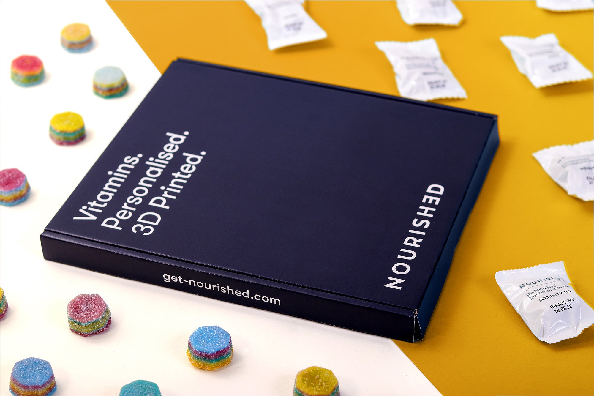 Rem3dy Health社は、先進的な3Dプリント技術※を活用し、パーソナライズされた栄養食品を提供するスタートアップ企業です。代表的な商品「NOURISH3D(ナリッシュト)」は、オーダーメイドの栄養グミです。ウェブサイト上で入力された食生活や運動の状況といった情報をもとに、味の好み、必要な栄養、ライフスタイルなど、一人ひとりのニーズに対応したグミが製造されます。