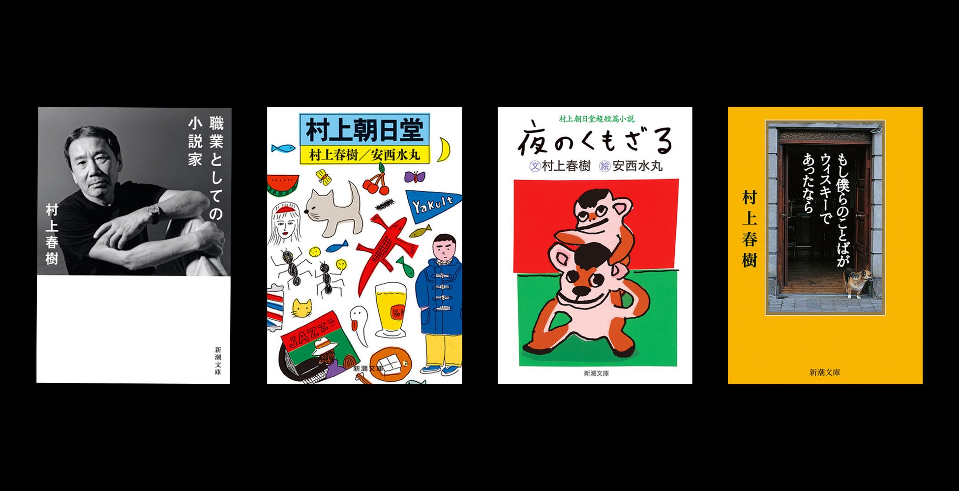 多くのリクエストにお応えし、これまで電子化されていなかった村上春樹のエッセイ12作品がいよいよ電子書籍として登場します。今回配信されるエッセイ作品は、村上春樹が雑誌連載でイラストレーター安西水丸との名コンビで人気を博した「村上朝日堂シリーズ」6冊と、カラーの絵と文で描かれる画文集3冊、加えて紀行文と回想記の3冊、計12作品です。ちなみに『村上朝日堂超短篇小説 夜のくもざる』はその名の通り超短篇の小説集で、イラスト付きで奇妙な味わいの小説が並びます。『村上朝日堂ジャーナル うずまき猫のみつけかた』は安西画伯のカラーイラストも楽しい90年代アメリカ滞在記です。紀行文『もし僕らのことばがウィスキーであったなら』は、スコットランドのシングルモルトウィスキーの醸造所を訪ねる極上の日々が描かれる佳品で、『辺境・近境 写真篇』は国内外の旅の記録『辺境・近境』で撮られた松村映三の写真を中心に編まれた写真文集です。そして、『職業としての小説家』。この作品は、講演録の形をとって、村上春樹の小説家としての人生を回想風にまとめた稀有なエッセイ集で、村上ファンなら必読と言える一冊です。
