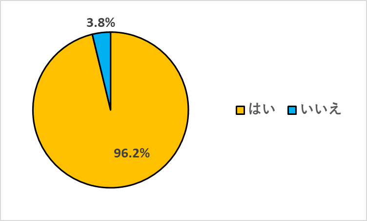 冬物アウターを持っているかどうかについては、「はい」96.2%、「いいえ」3.8%と、9割以上の人が持っていると回答していました。