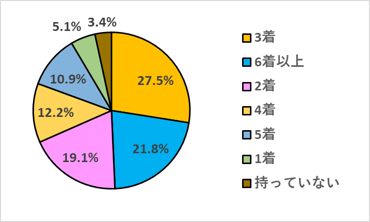 「冬物アウターを何着持っていますか?」の質問に対し、「3着」が27.5%、「6着以上」が21.8%、「2着」が19.1%という順になりました。2~3着持っている方が多いようですね。